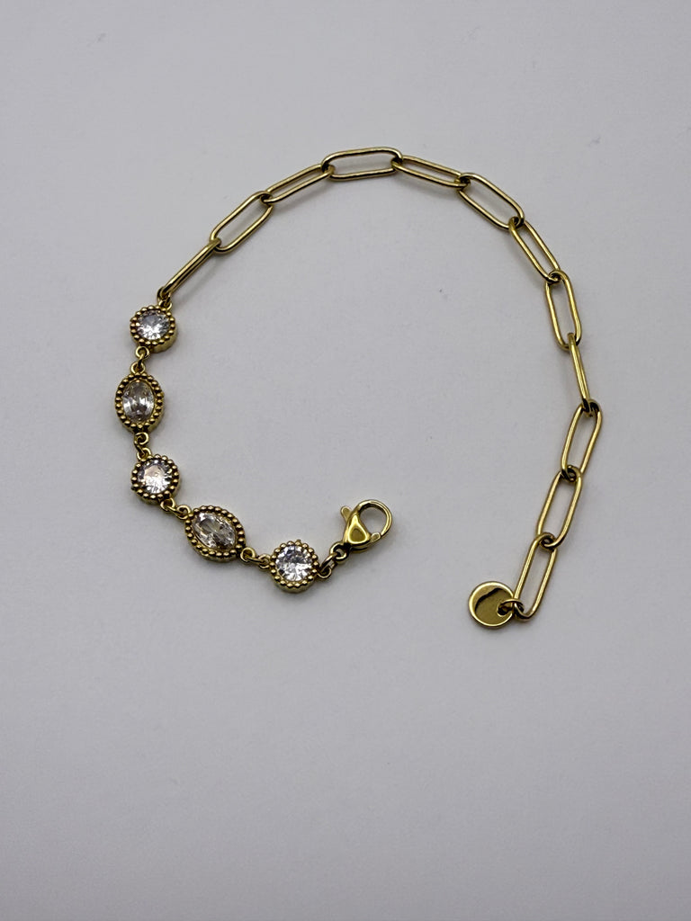 CZ Sparkly Oval/ Circle Chain Bracelet in Gold or Silver